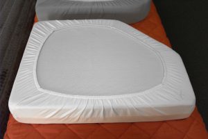 Angenehmer und erholsamer Schlaf im Reisemobil hängt wesentlich von den Klimaeigenschaften der Matratze und des Bezuges ab. Die optimale Luftzirkulation innerhalb der Matratze gewährleistet zusätzlich ein speziell von der Firma Ames Europe entwickeltes Abstandsgewirk. Es wird als umlaufendes Band eingenäht.