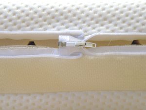 Unsere Matratzen sind mit praktischen Features versehen. Denn dadurch wird das Handling und der Komfort rund um die Matratze deutlich erhöht. Das linke Foto zeigt den aushakbaren Reissverschluß. So kann einfach nur das Oberteil des Bezuges abgenommen und gewaschen werden. Bei Matratzen über ab 12 cm Höhe wird Luftdurchlässigkeit erhöht. Denn ein seitliches Gewebe lässt die Luft zirkulieren. (Bild Mitte) Im rechten Bild ist ein Spannbettlaken abgebildet.